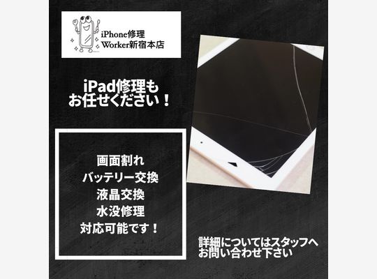 2025/08/20こんにちは。 iPhone修理Worker新宿本店です。 本日も歌舞伎町から徒歩圏内のアクセスで、元気に営業中です。 本日はiPad 9世代/画面割れ修理をいたしま... -
