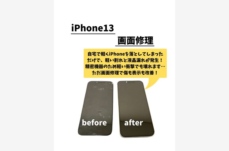 iPhoneを自宅で軽く落としてしまっただけで画面に割れと液漏れが発生してしまったとのことで、ご相談頂きました。こちらは画面修理でキレイに改善出来ました。作業は30分程度で完了しました。